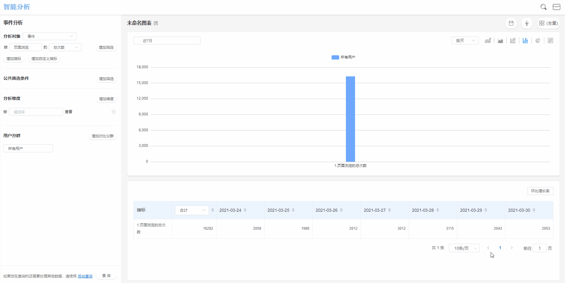 数据分析工作台内置了三种通用的事件指标,分别是总次数,用户数与人均次数。